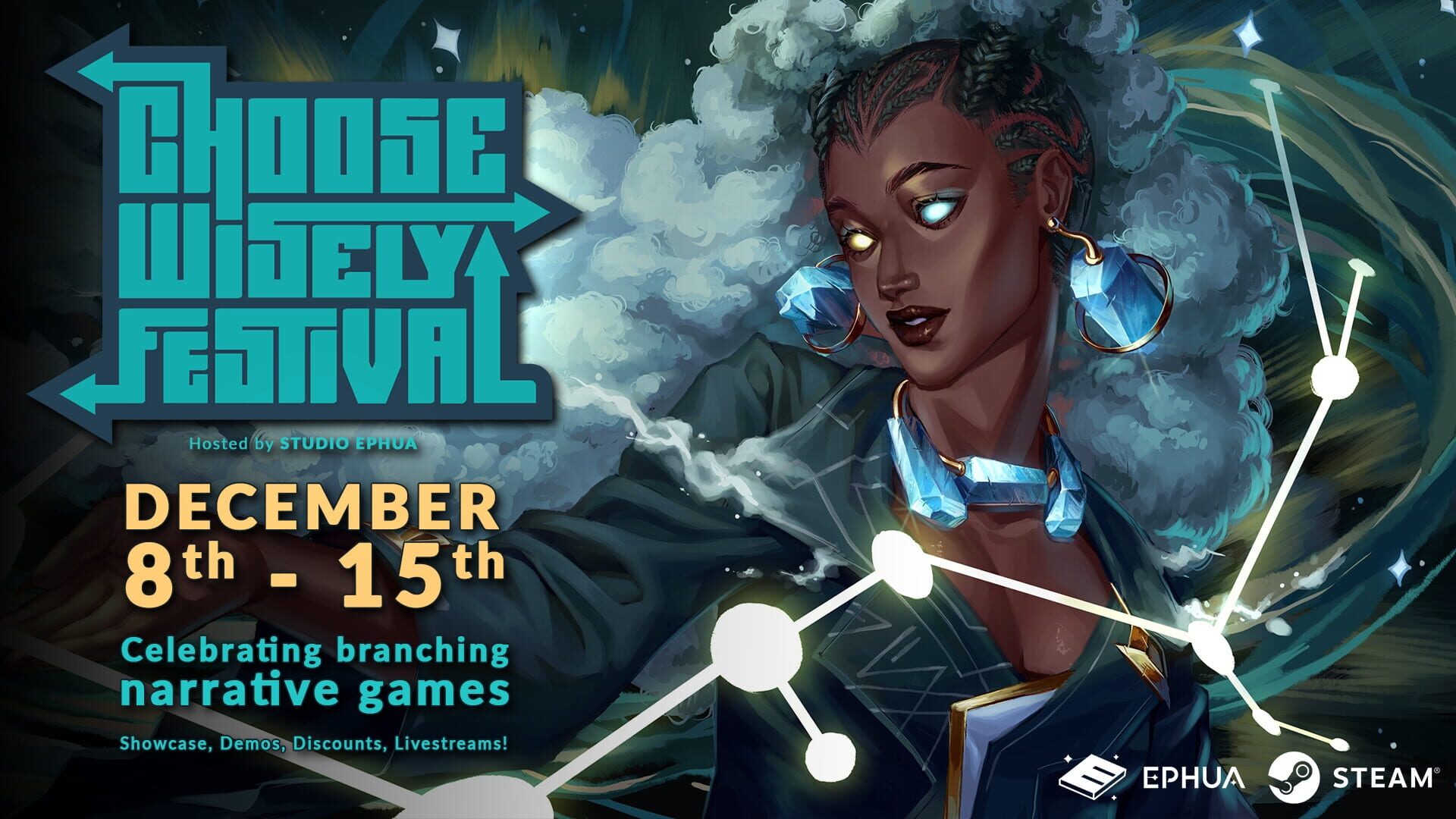 A showcase of 50 choices matter games, accompanying the week-long digital event dedicated to celebrating branching narrative in games.